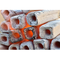 Flaming coals hotrods charcoal briquettes are made from bamboo. The process of making the charcoal briquette is as follows: The bamboo is ground down into a powder, from there it is put into a briquette manufacturing machine that dries the sawdust before it is compressed under extremely high pressure into a bamboo log. From there the bamboo log is placed in kilns and burnt for 1-2 weeks depending on the charcoal briquette grade required. All our Hotrod charcoal briquettes are "Japanese grade" so they are kept in the kiln for the longest time possible.