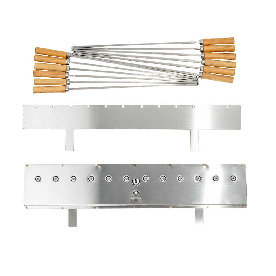 | Skewers | 12 stainless steel skewers, each 450mm long (including handle), with a 5mm diameter. |