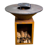Round Rustic Firepit BBQ with Wood Storage - 1000mm