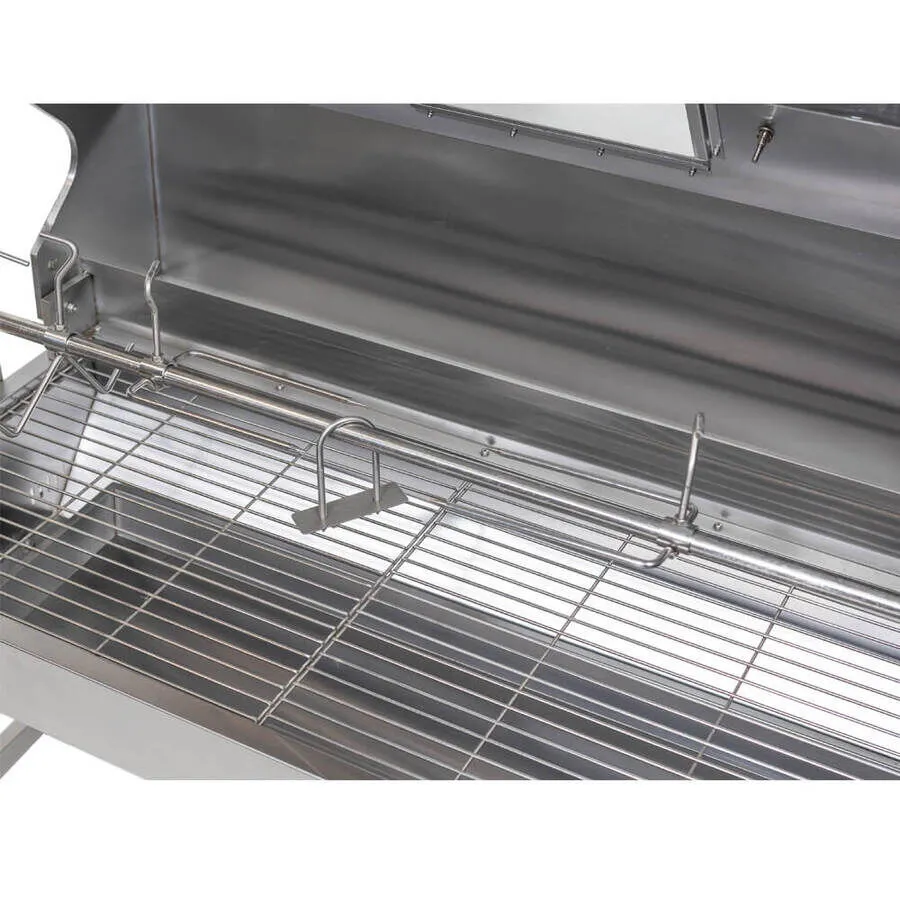 Crafted entirely from stainless steel, the Hooded Spartan Spit Rotisserie delivers long-lasting performance. Its solid design ensures stability and strength during long cooks while resisting rust and wear for reliable use year after year.
