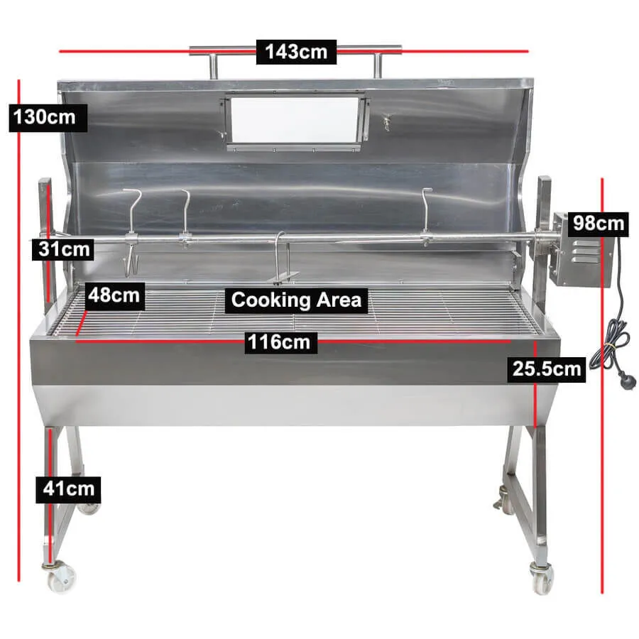 | Motor Options | 30 kg, 60 kg, or 120 kg rated motors to suit everything from small roasts to whole animals. |