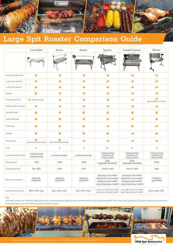 Not sure which large spit rotisserie suits you best? Use our Large Spit Roaster Comparison Guide to determine exactly what the differences are between all the large Flaming Coals Spit Roasters and help you make the right choice.