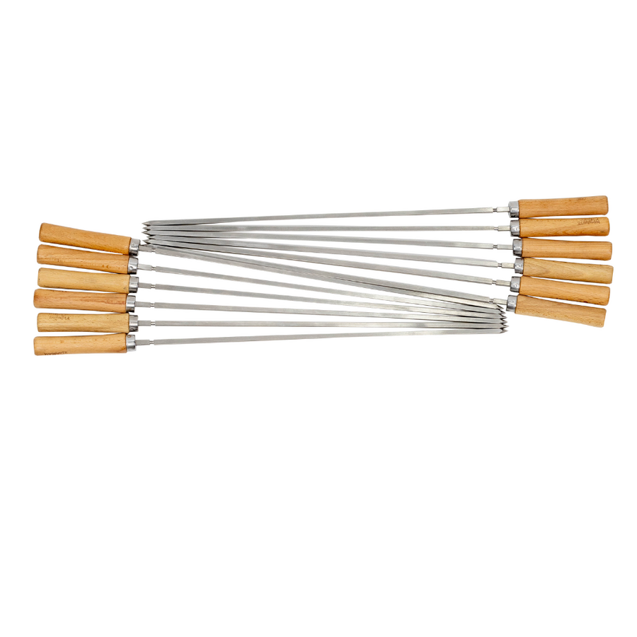 Cook up delicious meat and vegetable kebabs either directly on your BBQ or on a cyprus spit. Being 4mm thick, these skewers are twice as thick as other skewers you will find, meaning they won't bend or flex when you load them up.