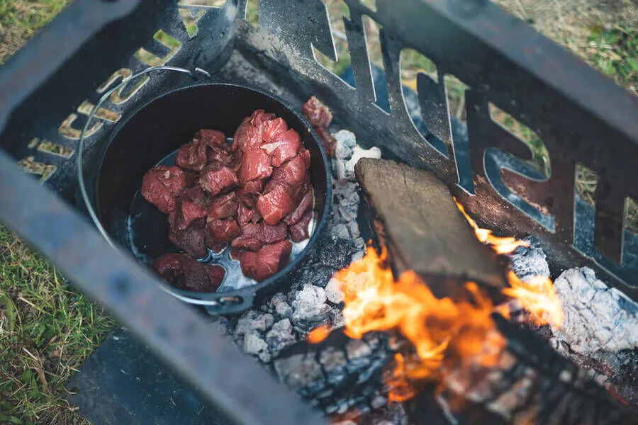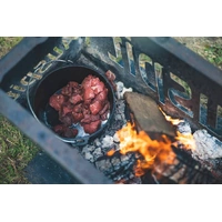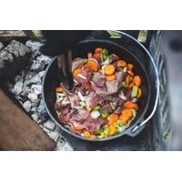 The Flaming Coals Cast Iron Camp Oven 9QT 12" (8.57ltr) has been manufactured using the latest casting technology to ensure that there are no imperfections in the casting and the finished product is of the quality that you would expect from Flaming Coals equipment. The lid has been moulded to include a lip around the top. This helps hold a decent amount of hot coals on top of the oven to give the perfect all-round cooking environment and also stops the coals from falling into your food when you open the pot. If you are looking best pot to use while camping, there is no substitute for a high-quality cast iron camp oven. You can cook stews, roasts, bread, pizzas, cakes and so much more.