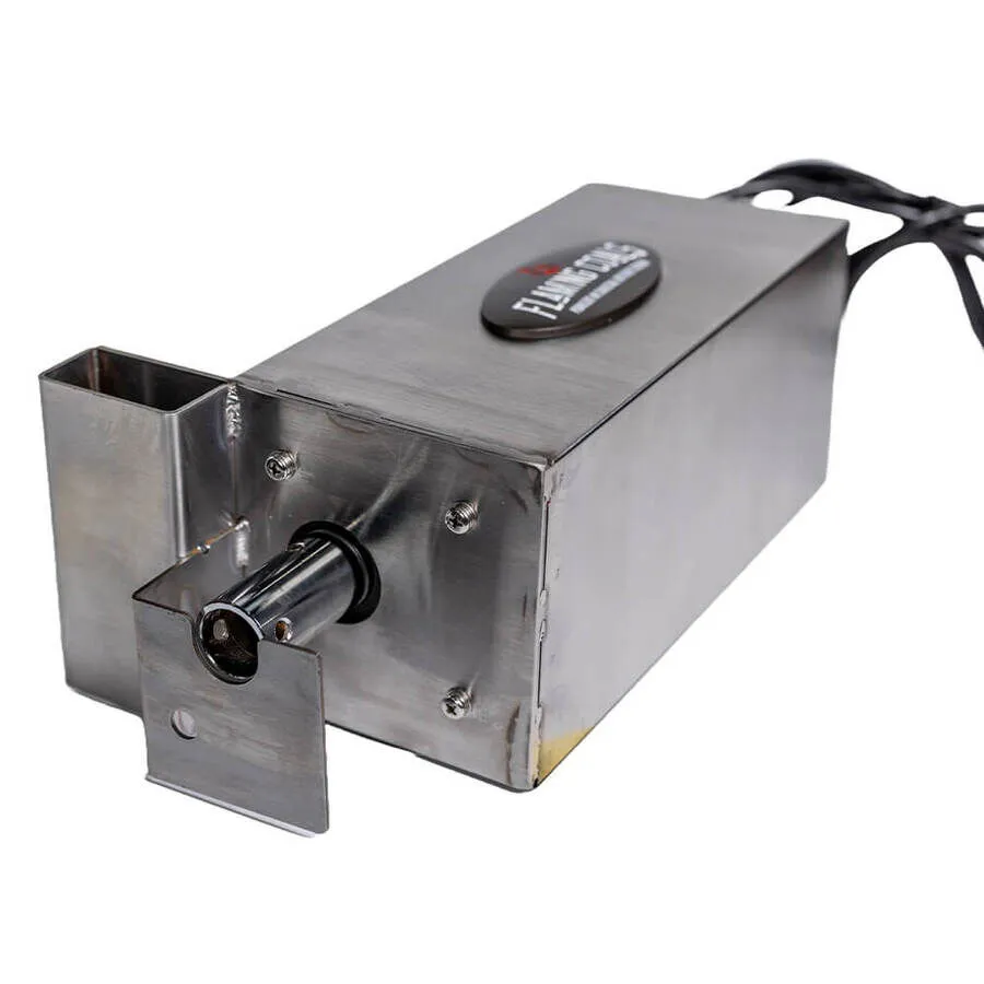 Upon popular demand, Flaming Coals delivers the strongest direct drive spit roaster motor available in the market today. This Commercial Grade Spit Roaster Motor- 120kg capacity (240v) has the capacity to turn up to 120kgs and will turn the largest of pigs, legs of beef etc.