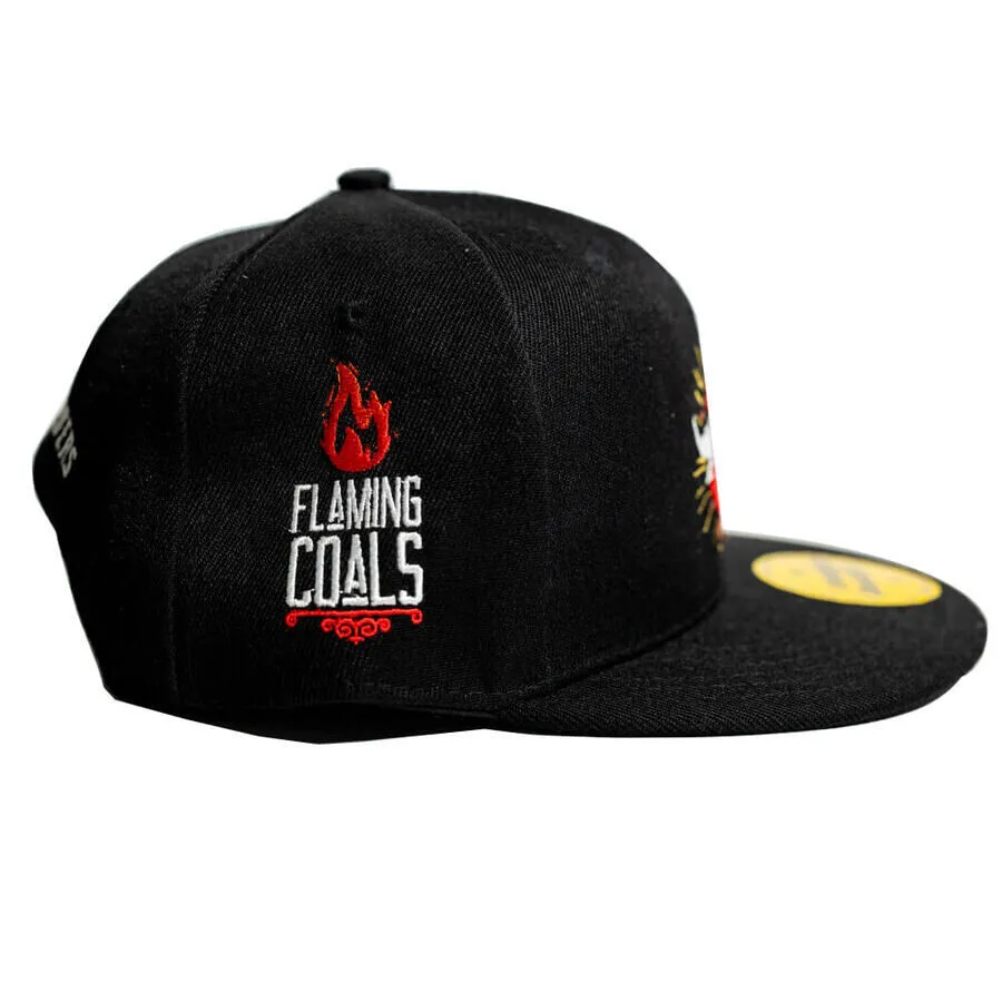 Unveil Your Passion: Ignite your passion for barbecue with the 'Flaming Coals' Bovine Espresso Flat Brim Hat. It's not just a hat; it's a statement piece that boldly proclaims your devotion to the world of sizzling flavours and charred perfection. Just like the celebrated Bovine Espresso seasoning, this hat is a tribute to the art of enhancing meats with remarkable taste.