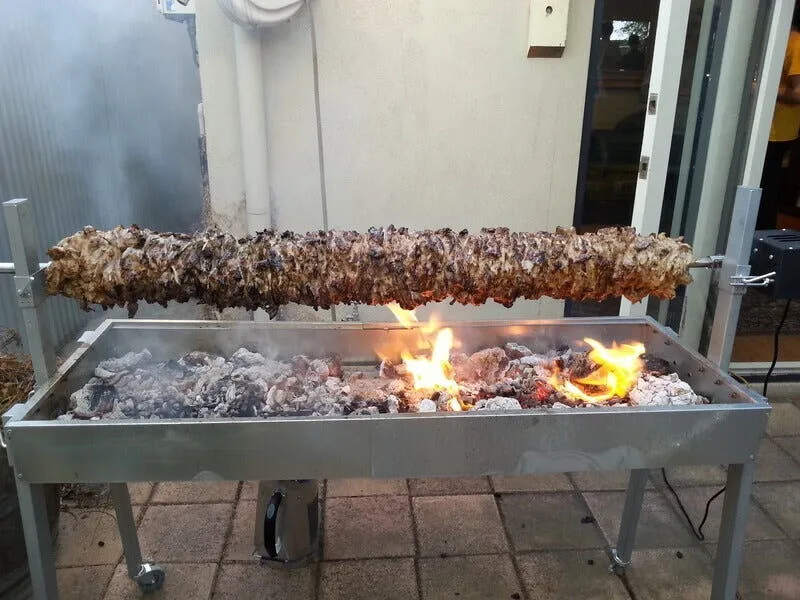 Introducing the Extendable Large Charcoal BBQ Spit Rotisserie: Versatile, Compact, and Built for Flavour!