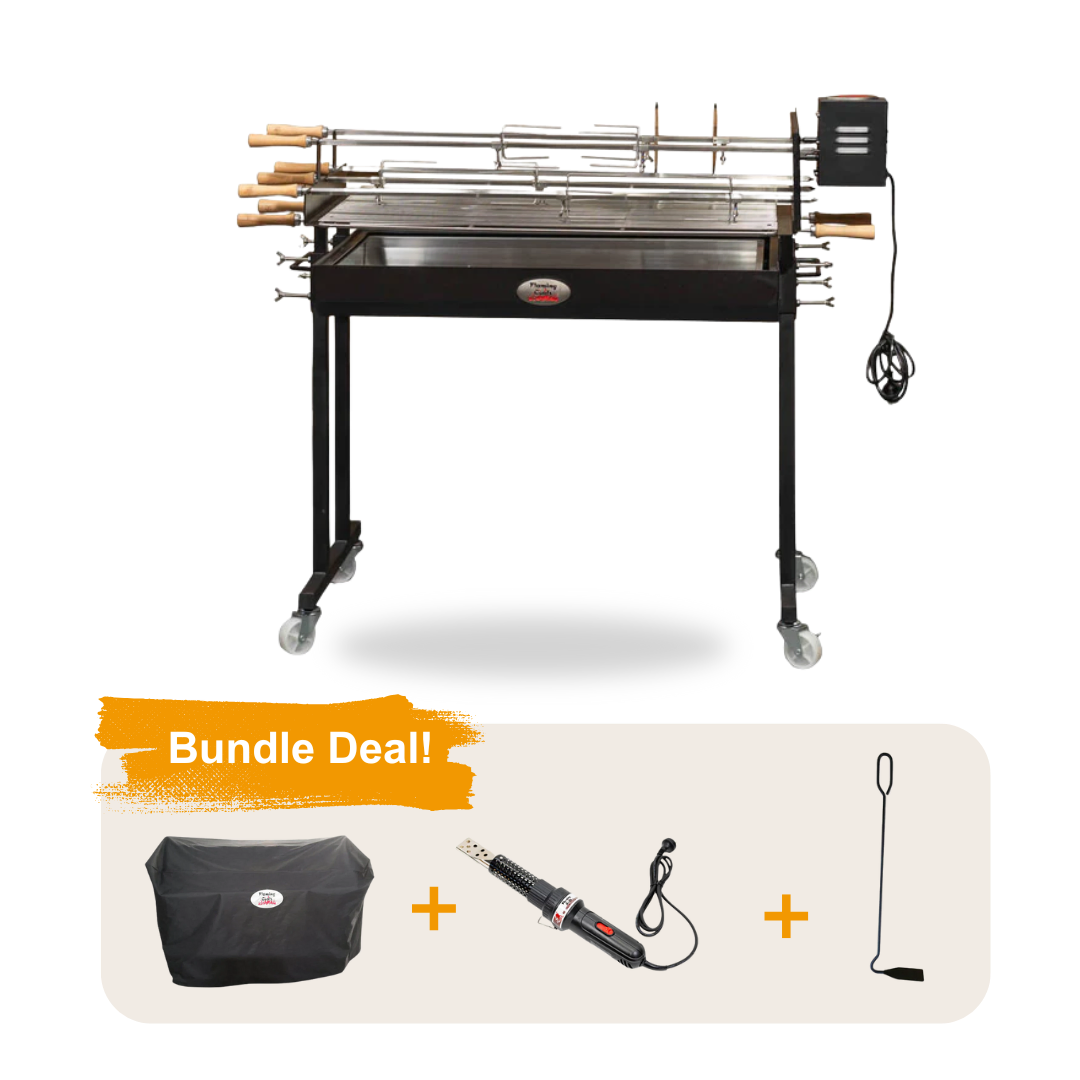 Equipped with a powerful 25kg 240v motor the same heavy-duty motor used on our large 1500mm spits this Cyprus spit is built for endurance and performance.