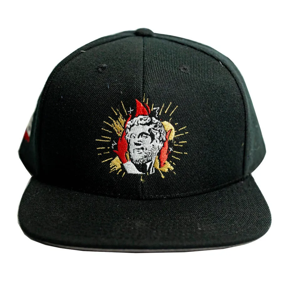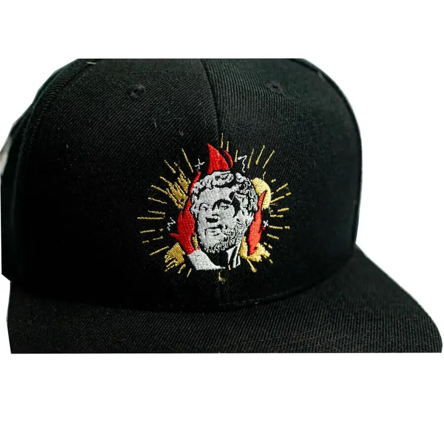 Designed in an alluring black hue, this hat complements any outfit and adds a dash of sophistication to your BBQ attire. The one-size-fits-all design ensures a comfortable fit for everyone, allowing you to focus on your grilling expertise without any distractions. Whether you're flipping skewers, marinating meats, or manning the grill, the 'Flaming Coals' Greek Gyros Flat Brim Hat will be your trusted companion, embodying the passion and dedication you bring to every culinary masterpiece. Make a bold statement, celebrate your love for smoky flavours, and embrace the spirit of the grill with this exceptional accessory. Get ready to turn heads and ignite conversations – order your 'Flaming Coals' Greek Gyros Flat Brim Hat today and wear your BBQ pride on your sleeve, or rather, on your head!