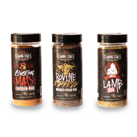 Bovine Espresso Brisket BBQ rub is the perfect companion for all things beef. Flaming Coals Clucking Mad Chicken Rub is an amazing combination of herbs and spices that will cause your taste buds to explode. Whether you're cooking whole chickens, breast or thigh, the Flaming Coals Clucking Mad chicken rub is to be a winner for the entire family. Flaming Coals Traditional Lamb Rub is a full-flavoured blend of herbs and spices making it the perfect companion for all lamb dishes. So if you are planning to cook in your backyard with family and friends, or trying to find a great gift, look no further: your search is now over. Grab this Rub and Sauce pack and enjoy the fantastic flavours today.