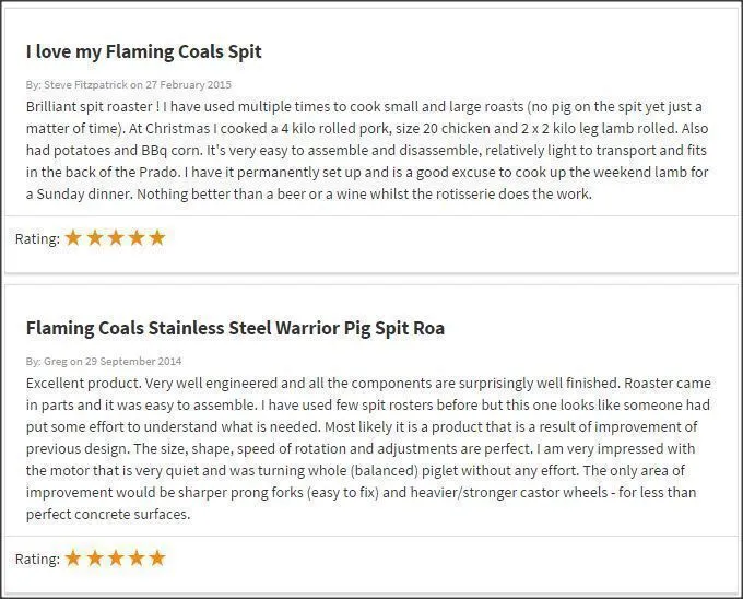 Made from stainless steel with a 1mm thick spit body, solid stainless steel skewer, and heavy-duty prongs, leg brackets, and back brace. Designed to last cook after cook.