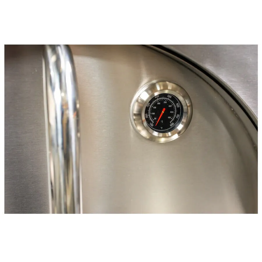 The oven is equipped with 28-30mm thick fire bricks that ensure every pizza comes out with a crispy base, while its fully insulated double walls keep the heat in, maintaining a high cooking temperature of 400-450ºC. It’s large enough to cook four standard pizzas simultaneously or even roast bread, meats, or desserts. The included thermometer helps you monitor the oven's temperature, ensuring perfect results every time.