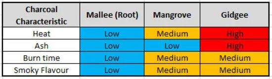 Because of Gidgees size and burning characteristics, this makes it suitable for high heat barbequing where you need to cook and seer steaks, it's also great for snake method and minion methods of smoking. Because of its high heat and long burn time, Gidgee is excellent coal for use in offset smokers, ugly drum smokers, pizza ovens and height-adjustable charcoal grills. Larger spit roasters and ceramic cookers such as big green eggs and komodos would benefit more by using the longer slightly lower temperatures produced by Mallee root lump charcoal.