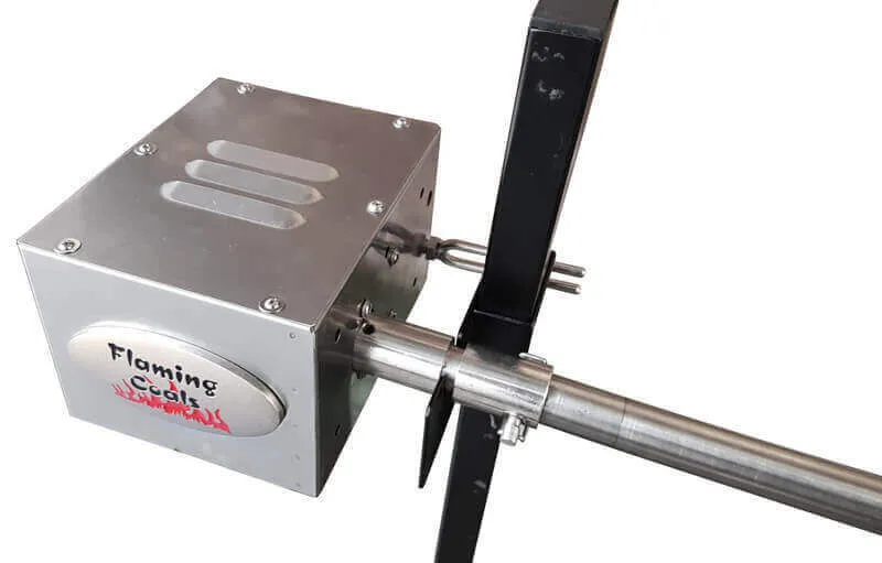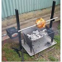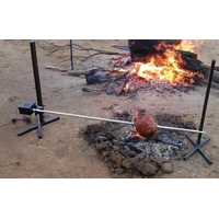 With the motors, you have the option of a 12/240V motor rated at 20 kg of balanced load or one of three 240 volt motors with a power capacity rating from 30kg to 100kg of balanced load. The solid skewer and cross-leg design also make this rotisserie perfect for mounting alongside your firepit at home.
