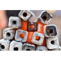 Flaming coals hotrods charcoal briquettes are made from bamboo. The process of making the charcoal briquette is as follows: The bamboo is ground down into a powder, from there it is put into a briquette manufacturing machine that dries the sawdust before it is compressed under extremely high pressure into a bamboo log. From there the bamboo log is placed in kilns and burnt for 1-2 weeks depending on the charcoal briquette grade required. All our Hotrod charcoal briquettes are "Japanese grade" so they are kept in the kiln for the longest time possible.