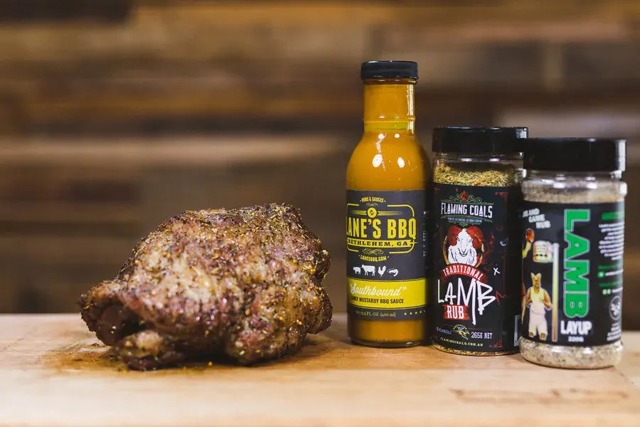 - Spit Roasting a De-boned lamb shoulder - Rubbed with Flaming Coals Traditional Lamb Rub and Low n Slow Basics Lamb Layup. Sauce - Lanes BBQ Southbound BBQ sauce.