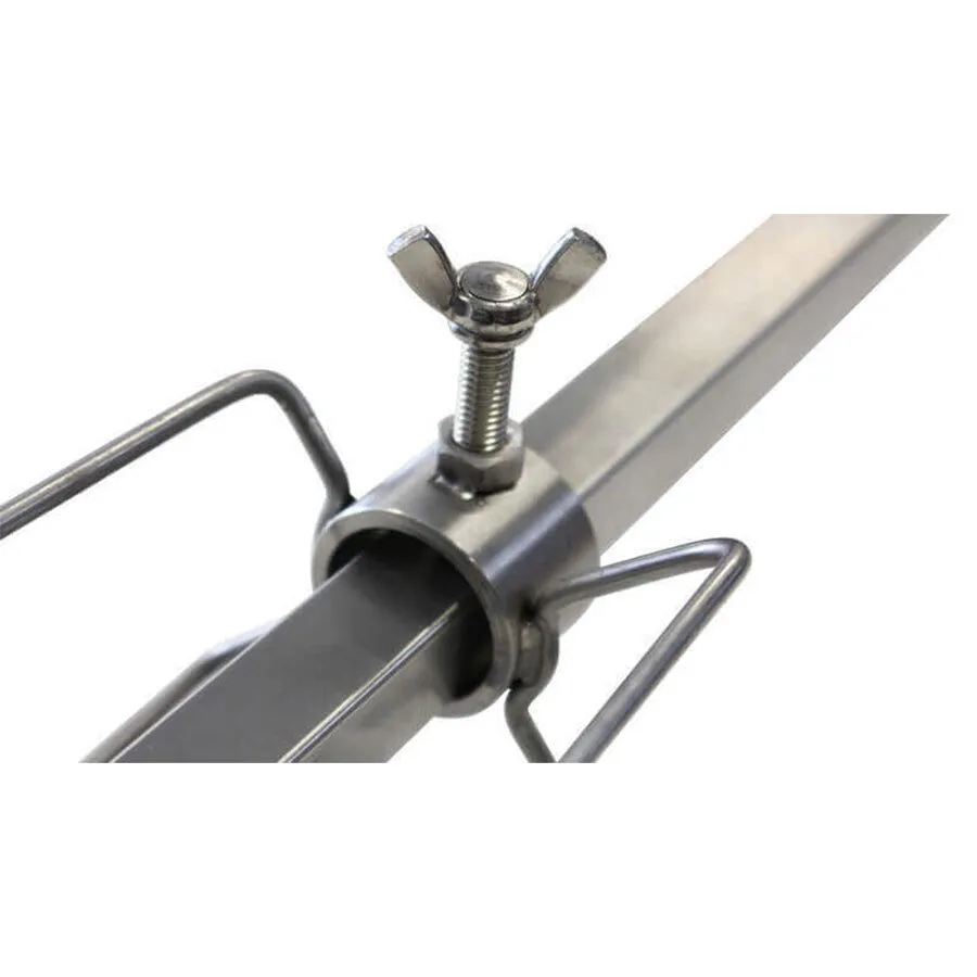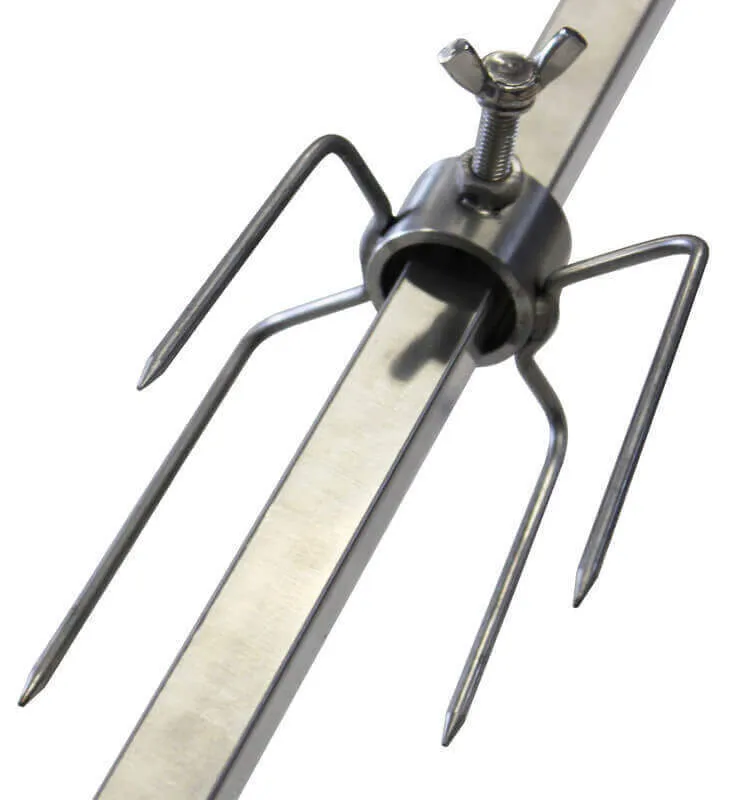 • Fits up to 28mm round skewer or 20mm square skewer (spits purchased from Masters or Bunnings come with a 20mm square skewer so these prongs will fit)