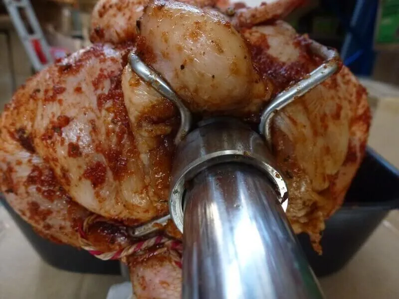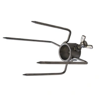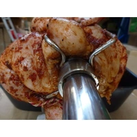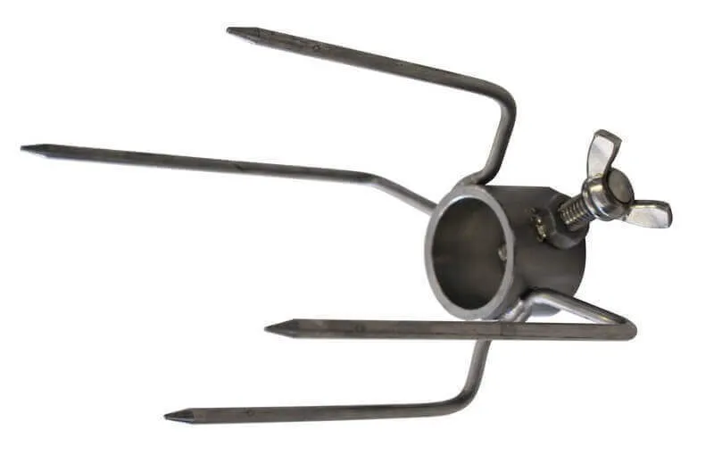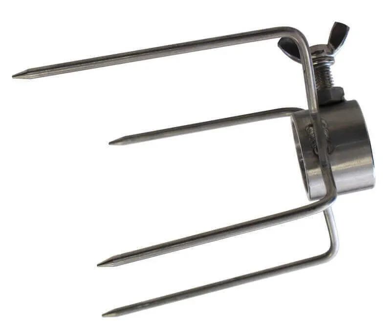Large 4 Prong Rotisserie Fork for Chicken - 28mm Round are suitable for affixing chickens, gyros, rolls of meat or pretty much any meat other than whole animals to a skewer. The long screw nut ensures you can fasten the prongs tightly to the skewer to remove movement while cooking.