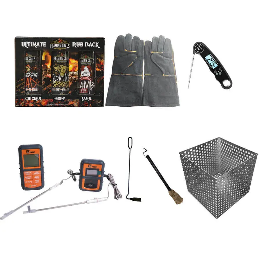 Flaming coals has taken care of these unavoidable steps you will encounter while smoking in an offset smoker and put together a kit with these must-have smoker accessories along with some rubs to flavour your meat.