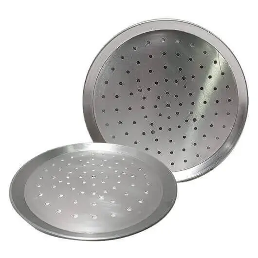 This commercial-quality, aluminium pizza pans come with an angled edge to avoid losing that delicious home-made pizza over the side. The holes promote airflow so that the dough can cook evenly and give you a perfectly cooked crust. It also enables moisture to escape preventing a soggy crust. Easy to slide under with a pizza peel, the Flaming Coals Perforated Aluminium Pizza Tray is the perfect accessory for your pizza oven.