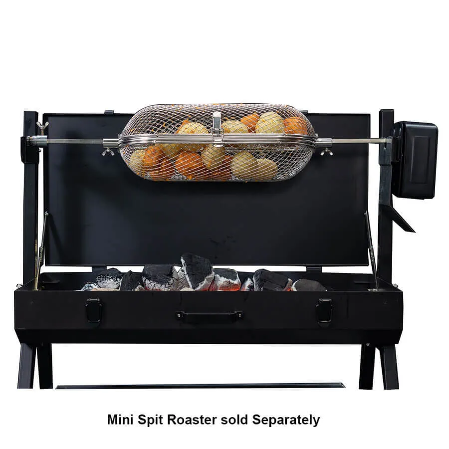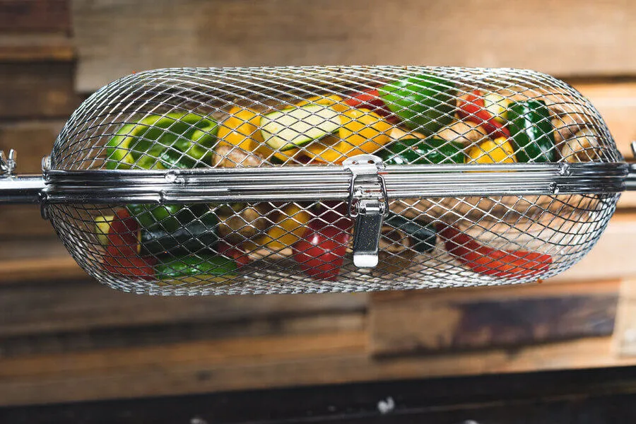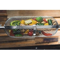 If you are looking for a basket that you can cook vegetables, chestnuts, spuds or even wings on your rotisserie, then the Flaming coals Rotissie basket - Round cage tumbler is perfect and compatible with most compact spits such as the Jumbuck, Mini Spit or even the Rotisserie on your gas BBQ.
