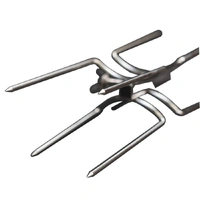 This spit roast chicken pack comes with 2 end chicken prongs and 1 double ender chicken prong. This starter pack is suitable for 2 whole chickens to be cooked at one time on a spit roaster. Also can be used for cooking other smaller cuts of meat.
