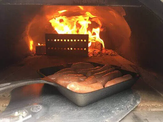 Using a log holder in your wood fired pizza oven allows you to hold the burning logs in the rear or the side of the pizza oven, this in turn improves the heat produced from the fire, prevents ash and coals from spreading all over your cooking surface and onto your pizzas as well as deflects some direct heat making it that little bit easier to manage cooking your pizzas.