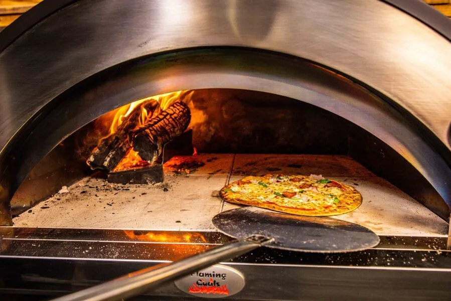 Hold your fire to the side while cooking pizza