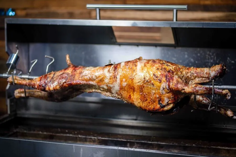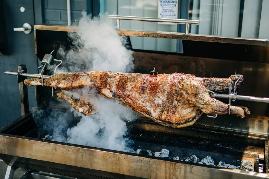 This hollow, one-piece, stainless steel skewer 1200mm is strong enough to hold 60kgs of meat.