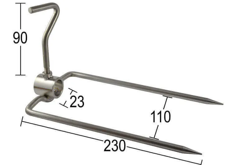 • 2 large prongs to suit a 22mm round skewer or 16mm square skewer