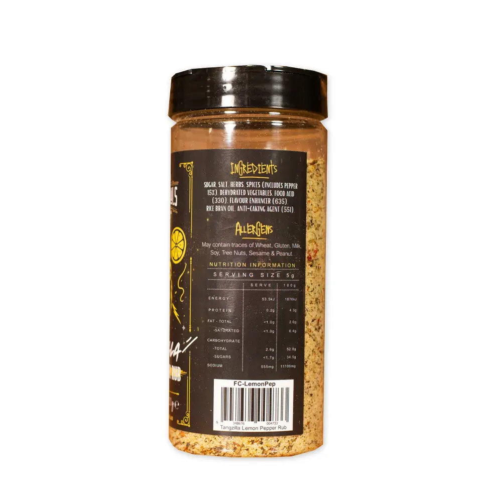 Unleash the beast with Tangzilla, our limited edition Lemon Pepper rub! This intensely-powered blend combines zesty lemon with a bold pepper kick, perfect for poultry and seafood. Each sprinkle transforms ordinary meals into a flavour-packed adventure that commands attention. Don’t miss your chance to go wild. Tangzilla won’t stick around forever!