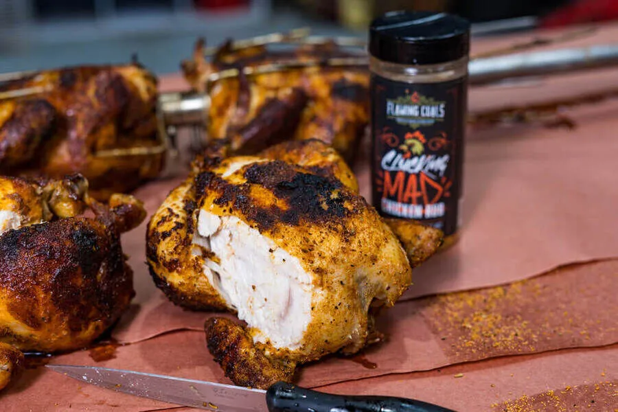 An all-time favourite, this Flaming Coals Chicken Rub transforms chicken with bold herbs and spices. Simply coat your bird, cook over charcoal, and finish with lemon juice for unbeatable flavour.